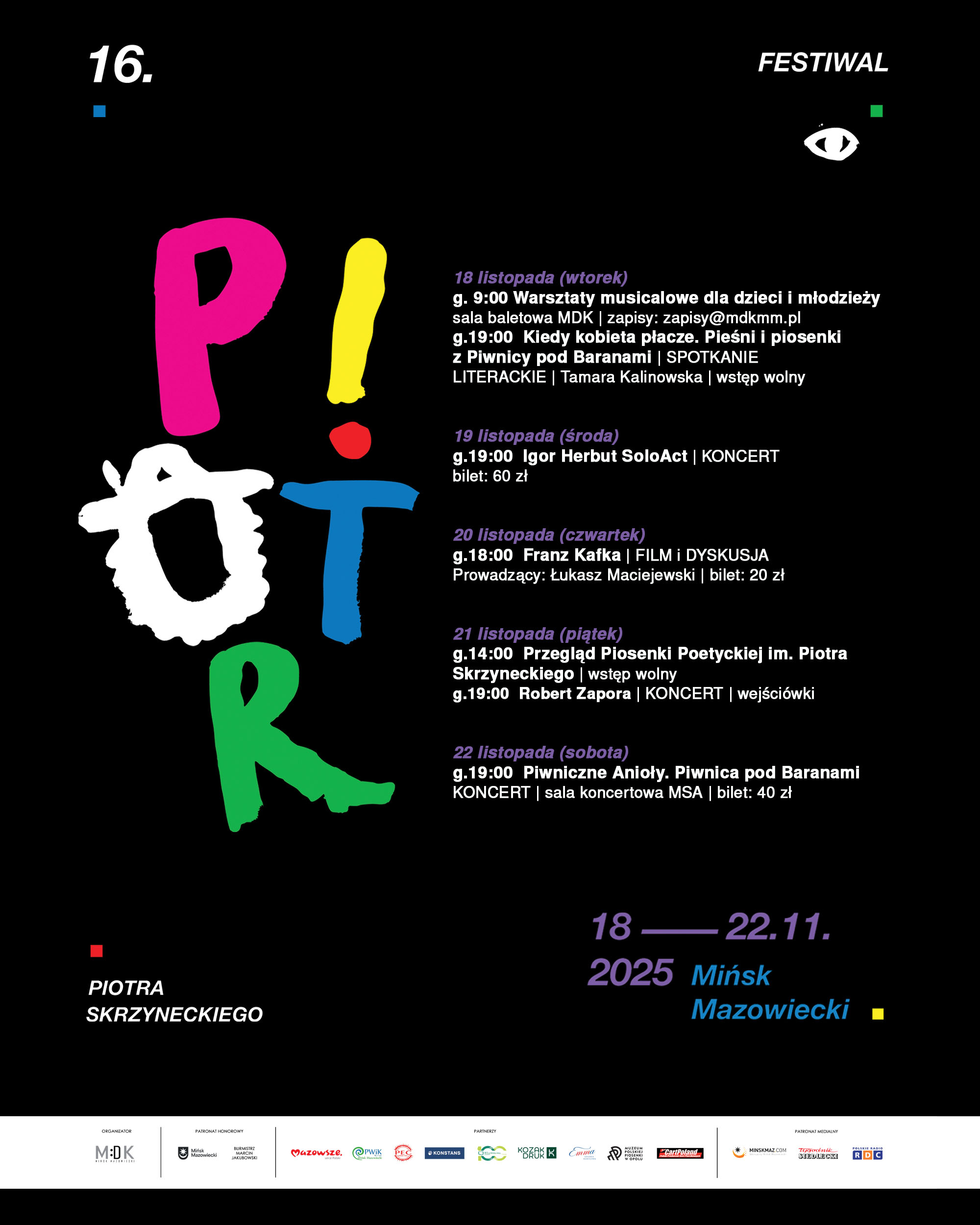 W połowie listopada Mińsk Mazowiecki po raz szesnasty stanie się miejscem spotkań z poezją, muzyką i teatrem. Program tegorocznego Festiwalu Piotra Skrzyneckiego obejmuje koncerty, projekcje filmowe, warsztaty oraz przegląd piosenki poetyckiej.