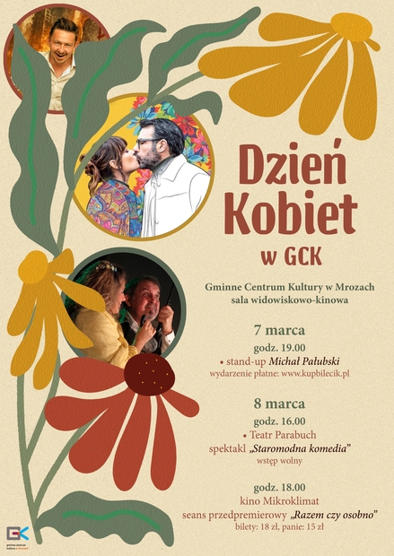 Mrozy zapraszają do wspólnego świętowania Dnia Kobiet. W programie wydarzeń przygotowanych przez Gminne Centrum Kultury im. H. Wielobyckiej znalazły się: wieczór stand-up, spektakl teatralny oraz pokaz przedpremierowy w kinie.