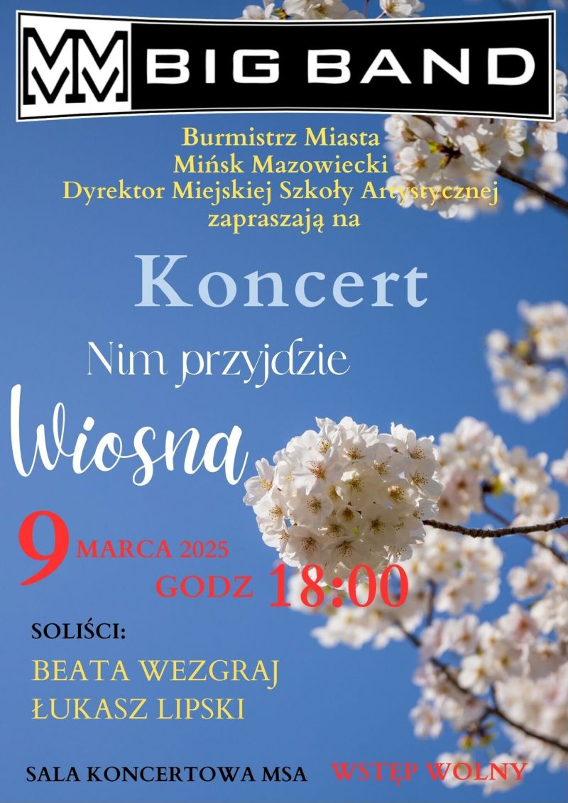W Miejskiej Szkole Artystycznej w Mińsku Mazowieckim odbędzie się koncert pt. „Nim przyjdzie wiosna”. Przed publicznością wystąpi zespół Big Band.