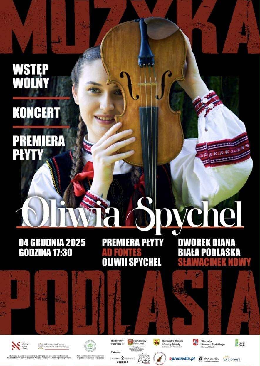 Oliwia Spychel swoją przygodę ze skrzypcami rozpoczęła, kiedy była dzieckiem. Ćwiczyła pod okiem Zdzisława Marczuka. Dwanaście lat nauki i gry przynosiły efekt w postaci płyty „Ad Fontes”. Premiera albumu odbędzie się 4 grudnia o godzinie 17:30 w Dworku Diana w Białej Podlaskiej – Sławacinek Nowy. Podczas tego spotkania Oliwia zagra na żywo, opowie o pracy nad materiałem i o tym, dlaczego właśnie teraz zdecydowała się zamknąć swoje muzyczne doświadczenia na pierwszej w życiu płycie.Koncert ma charakter otwarty, a patronuje mu Katolickie Radio Podlasie oraz portal Podlasie24.pl.