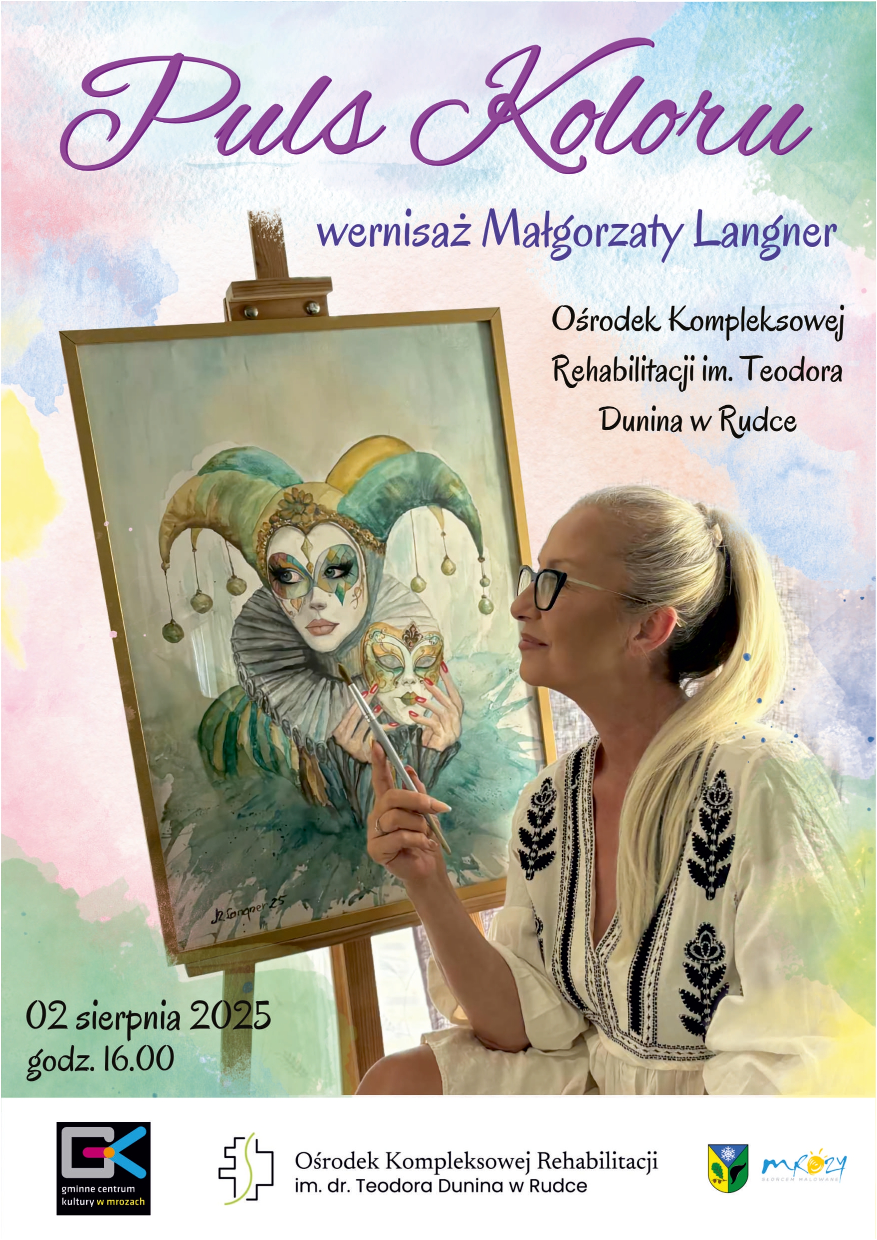 Wyjątkowe wydarzenie artystyczne – wernisaż prac Małgorzaty Langner zatytułowany „Puls Koloru” - odbędzie się 2 sierpnia o godz. 16:00 w Ośrodku Kompleksowej Rehabilitacji im. dr. Teodora Dunina w Rudce w Gminie Mrozy.