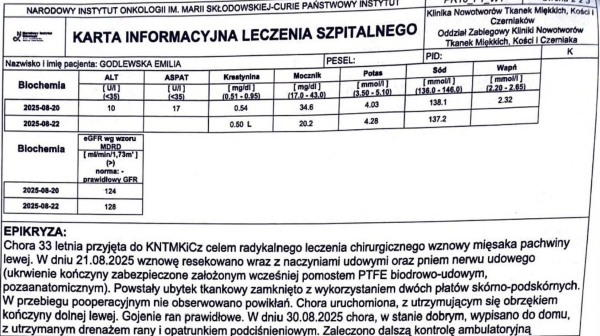 W małych społecznościach nikt nie jest anonimowy. Ludzie znają się, wspierają i potrafią być razem w najtrudniejszych chwilach. Dziś całą okolicę Ciechanowca porusza historia 34-letniej Emilii – młodej kobiety, której życie w jednej chwili zamieniło się w dramatyczną walkę o zdrowie i przyszłość.Jeszcze w 2022 roku wszystko wyglądało zwyczajnie. Niepokojące zgrubienie na nodze miało być niegroźnym krwiakiem. Diagnoza była błędna! Ruszyły kolejne badania, ale czas, który w chorobach nowotworowych ma kluczowe znaczenie, został bezpowrotnie stracony. Ostatecznie padła diagnoza: mięsak maziówkowy – rzadki i bardzo agresywny nowotwór.