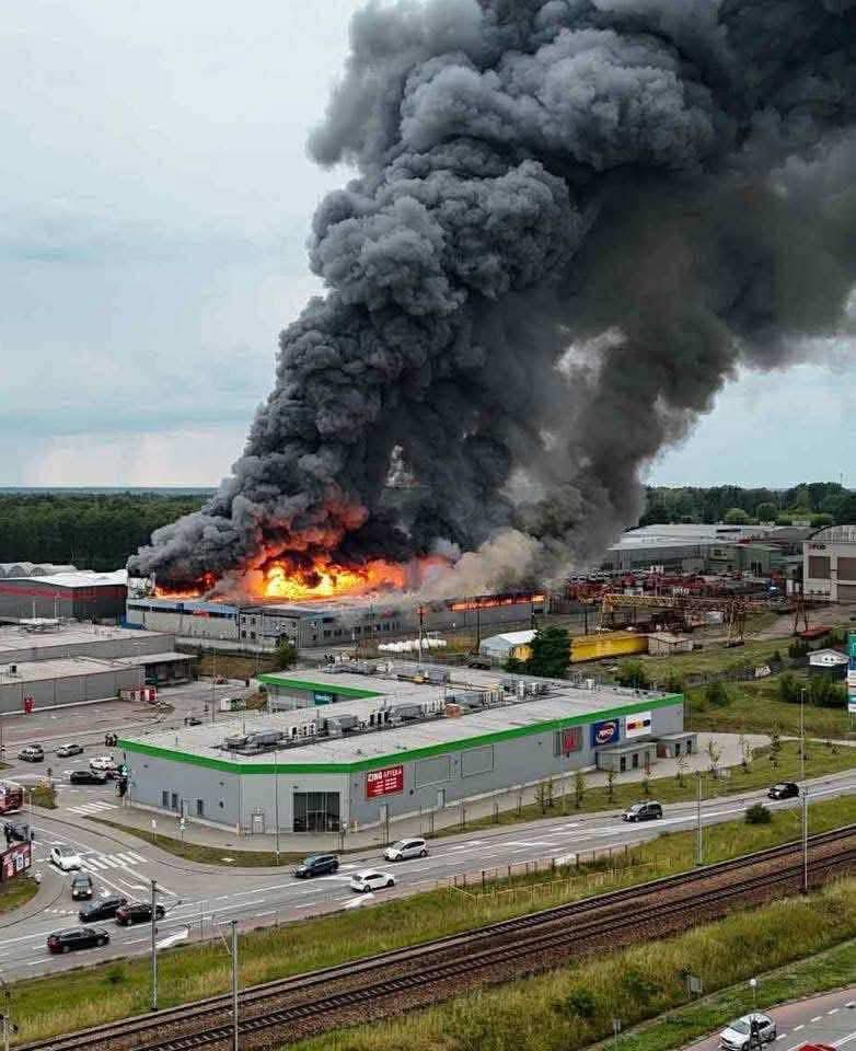 Mińsk Mazowiecki, ul. Dźwigowa – W niedzielny wieczór (13 lipca) wybuchł groźny pożar hali produkcyjnej firmy FOLPAK Baranowski, specjalizującej się w przetwórstwie tworzyw sztucznych. Ogień objął znaczną część obiektu, a akcja gaśnicza nadal trwa. RCB wysłało do mieszkańców powiatu mińskiego alert.