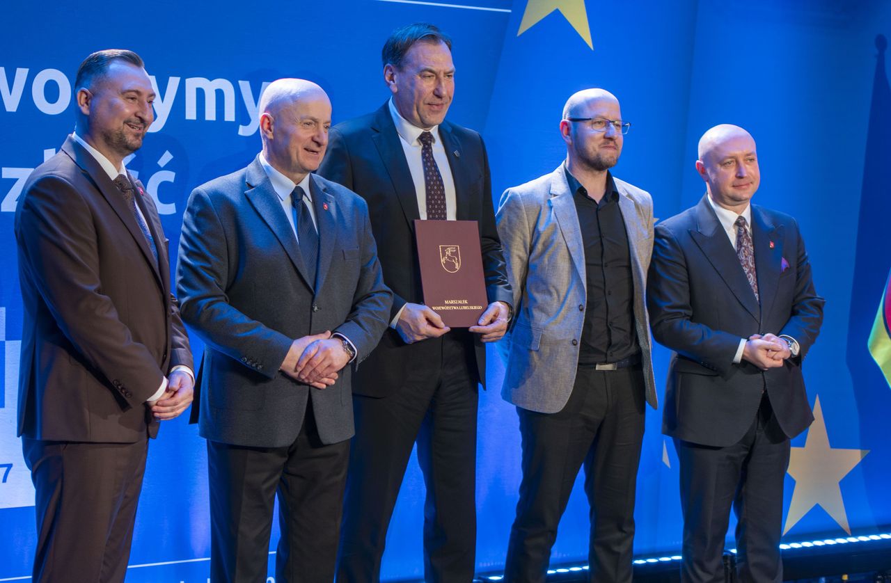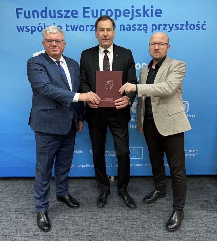 Marek Czub, wójt gminy Stoczek Łukowski wspólnie z Pawłem Lasotą, kierownikiem Gminnego Ośrodka Pomocy Społecznej odebrali od Jarosława Stawiarskiego, marszałka województwa lubelskiego, umowę na dofinansowanie projektu pt.: „Wsparcie rodziny w Gminie Stoczek Łukowski”. Pieniądze pochodzą z programu Fundusze Europejskie dla Lubelskiego 2021-2027. Gmina Stoczek Łukowski jest jedną z 19 gmin w województwie, która otrzymała dofinansowanie do projektu z zakresu wsparcia rodzin przeżywających trudności życiowe.